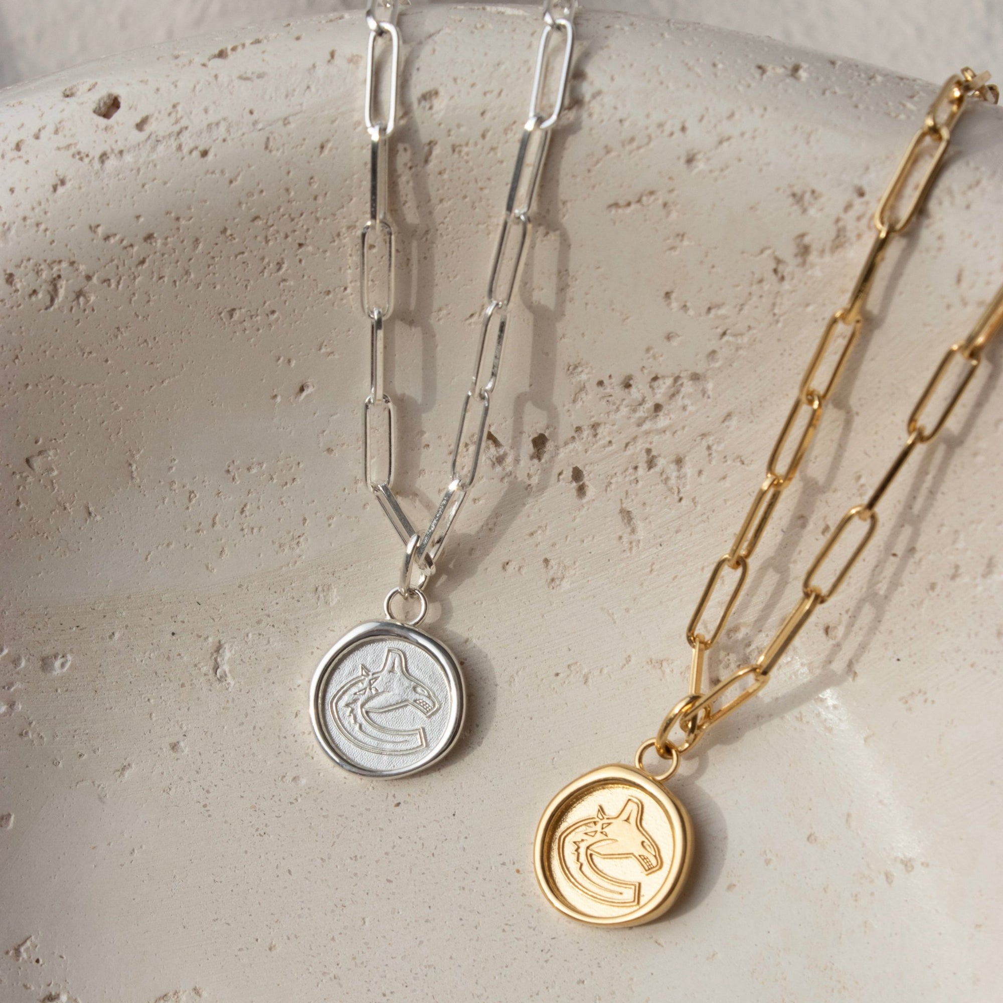 Vancouver Canucks Gold Wax Seal Orca Pendant Necklace