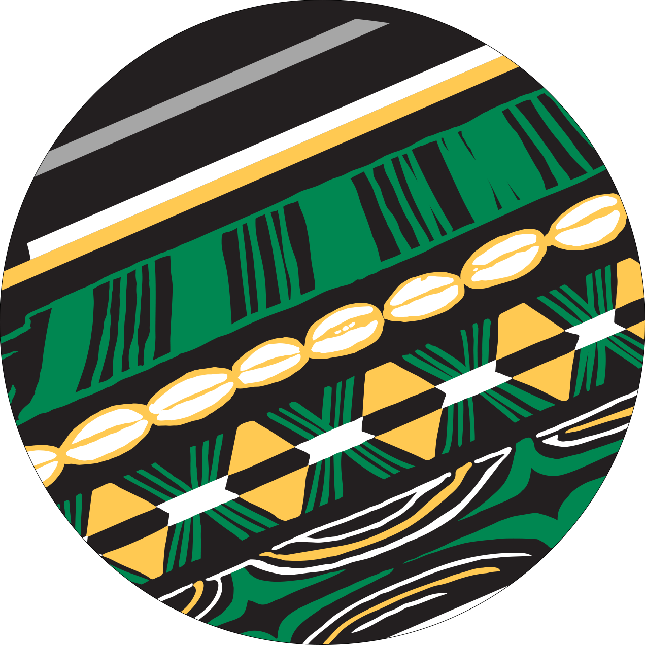 A calabash is crafted from a dried, hollowed-out gourd into which patterns are hand-carved. They are used many ways in Nigerian village homes, from cooking utensils to storage. Waving grass, cowrie shells and shining stars make up the patterns, reflecting the environment and memories of the calabash’s creator.