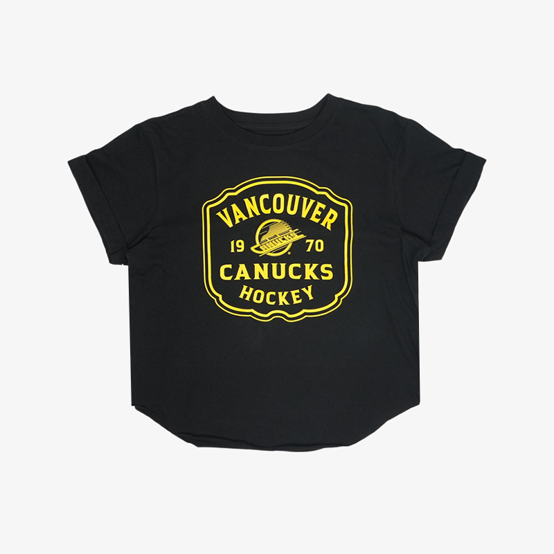 Vancouver Canucks Women's Black and Yellow Skate T-Shirt